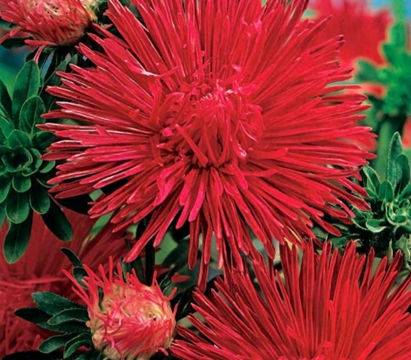 Zastosowanie: Aster chiński igiełkowy czerwony sprawdza się nie tylko jako roślina rabatowa, choć najczęściej widuje się go właśnie w tej roli. Coraz chętniej stosowany jest także jako główna ozdoba świeżych bukietów. Umieszczony w wazonie będzie wspaniałą dekoracją pokoju przez długi czas.