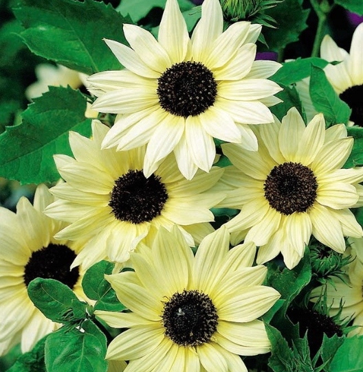 Słonecznik ogórkolistny Vanille Ice to jednoroczna roślina ozdobna, która bez najmniejszego problemu może być uprawiana w naszych warunkach klimatycznych. Jest jednym z najpiękniejszych słoneczników, jakie dostępne są na polskim rynku. Posiada kwiatostany kremowobiałe z bardzo ciemnym, wchodzącym w czerń środkiem. Idealnie nadaje się na rabaty, do pojemników, a także na kwiat cięty.