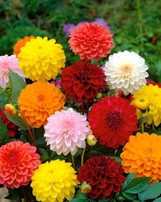 Zastosowanie: Dalia pomponowa to gatunek przede wszystkim rabatowy. Jej wielobarwne, gigantyczne, bogate kwiaty wspaniale wyglądają w dużych grupach, górując ponad roślinami o delikatniejszych i drobniejszych kwiatuszkach, np. odmianami aksamitki, lewkonii czy firletki. Wdzięczne towarzystwo dla georginii jednorocznych stanowią także kosmosy, strzeliste wyżliny i szałwia omączona. Kwitnące pędy rośliny, oferowanej w naszym sklepie, warto ścinać do wazonu tuż po otwarciu się pąków – świeżo rozwinięte kwiaty bardzo długo zachowują świeżość w naczyniu z wodą.